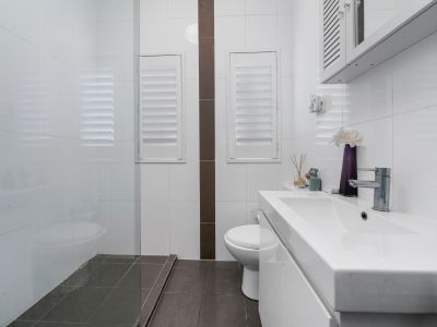 - Step inside this beachside apartment which offers crisp neutral décor and original timber flooring throughout